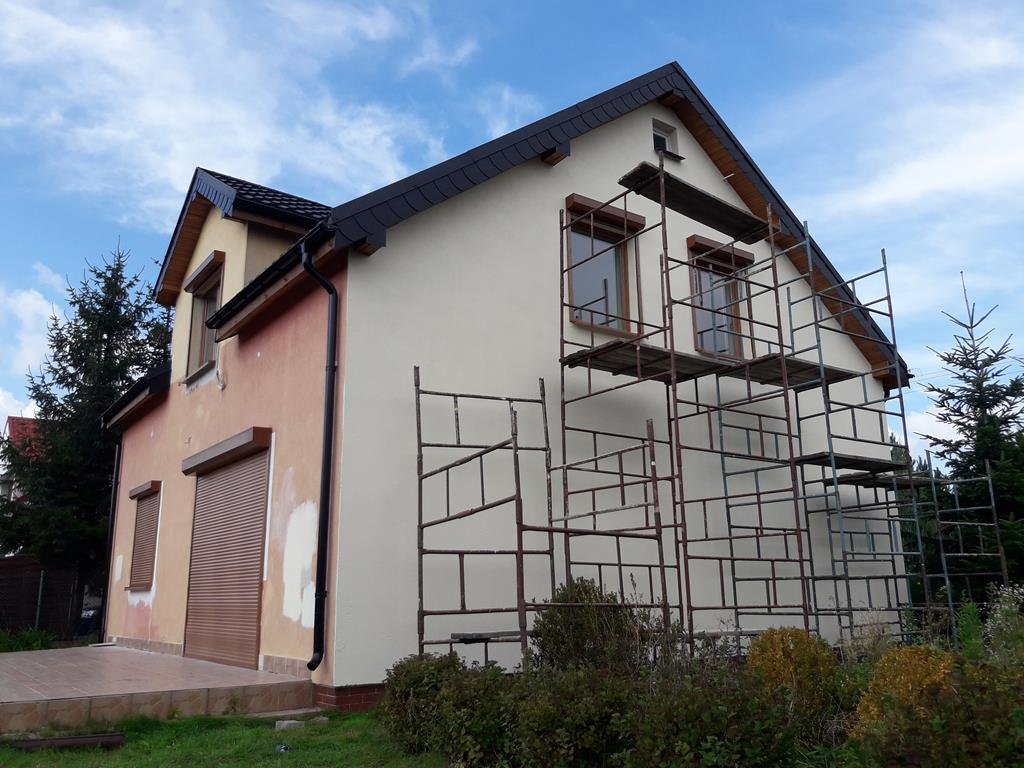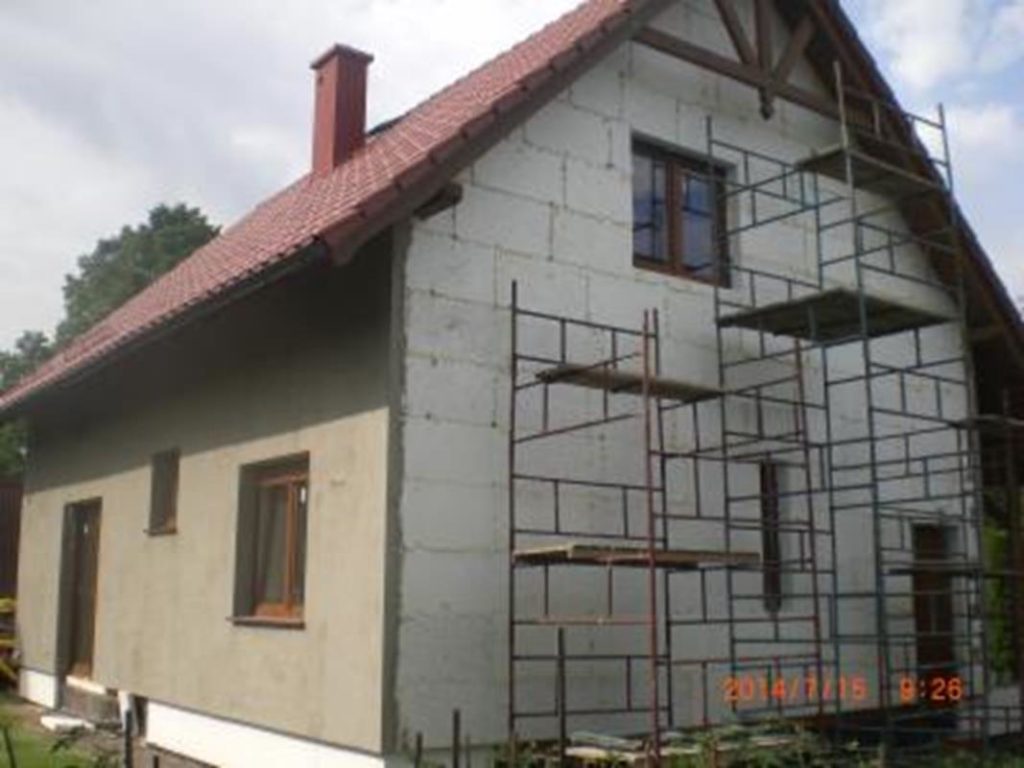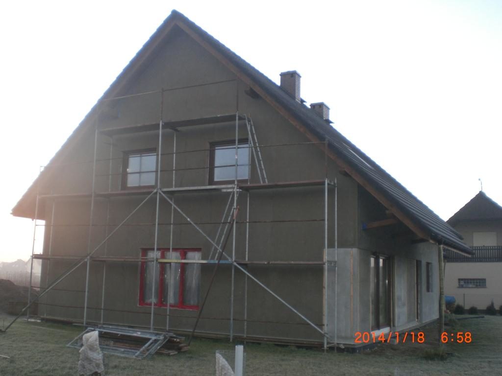Na zdjęciu widoczny stan surowy otwarty.Widok po zakończeniu realizacjiDom wybudowany od podstaw pod klucz: taras, ławy z fundamentem, ściany z ytong, strop żelbetonowy, wiezba dachowa, kominy, dachówka, roboty dociepleniowe elewacji i poddasza, zabudowa poddasza rigips, stolarka drzwiowa i okienna, instalacja elektryczna, instalacja wodna-centralnego ogrzewania-kanaliza, montaż armatury, glazura i gres w pomieszczeniach: salon, kuchnia, łazienki, schody i korytarze, kotłownia w reszcie pomieszczeń panele, tynki wewnętrzne gipsowe i zewnętrzne strukturalne, płot klinkierowy, drenaż, podbitka drewniana, kominek, mebleWykonanie nadbitki , szlifowanie i artystyczna obróbka krokwi wraz z frezowaniem.Piony kominowe, strop nośny na legarach z zastrzałami i słupamiDach kopertowy czterospadowyDom innowacyjny postawiony od ścian aż po dach z kominem klinkierowym , wykończony tynkami gipsowymi i zabudową gips/karton, docieplony styropianem i wełną.Wykonana elewacja styropianowa i pokryta tynkiem strukturalnym , nadbitka wykonana z deski sosnowej w narożnikach docinana do konta 45 stopni, rynny i deska czołowa .Elewacja styropianowa , wykonana w technologi styropian , siatka , klej elewacyjny.Wykonawstwo docieplenia elewacji styropianowej , na zdjęciu widoczne piankowanie mostków cieplnychWykonawstwo dociepleń budynków , widoczne na zdjęciu dwie różne inwestycje.Widoczne docieplenie poddasza wełną przed zabudowąZabudowa poddasza użytkowego (widoczny właz strychowy) rigips na zdjęciu po lewej. Na zdjęciu po prawej stronie zabudowa korytarza rigipsami na klej oraz stelaż sufit -lewa ściana. Poniżej widoczne docieplenie poddasza wełną przed zabudową.Remont generalny z wymianą dachu, stolarki okiennej , drzwiowejRemont komina-wymiana pękniętych wkładów ceramicznych kominowychOsadzenie wiezby dachowej na stalowych legarachMontaż ogrodzeniaRemont elewacji i malowanieWymiana dachu i stropuWymiana stolarki okiennej i drzwiowej , zdjęcie przed remontemTynki cementowe i klejowe, malowanieBalustrada stalowaRemont elewacji z malowaniem