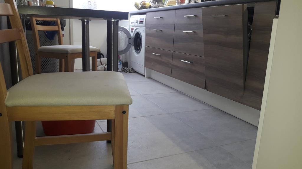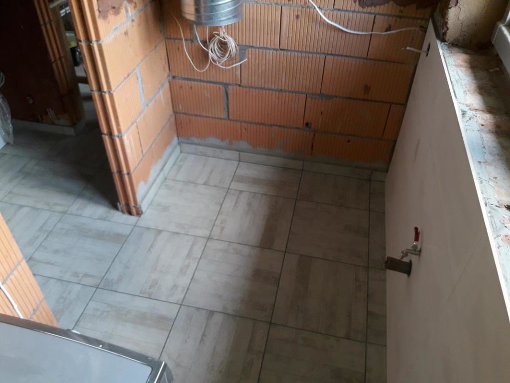 Kuchnia: terakota ścienna i gres na posadzce długości 1,2 metra