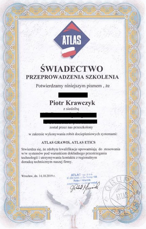 Świadectwo szkolenia ATLAS