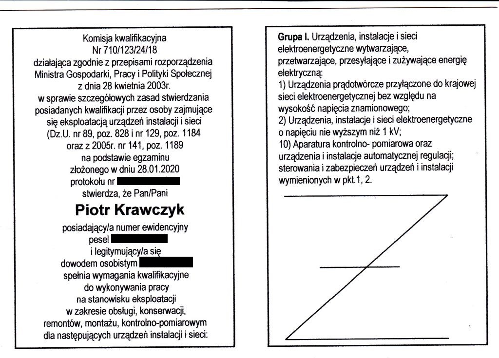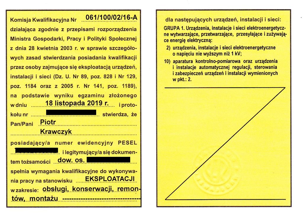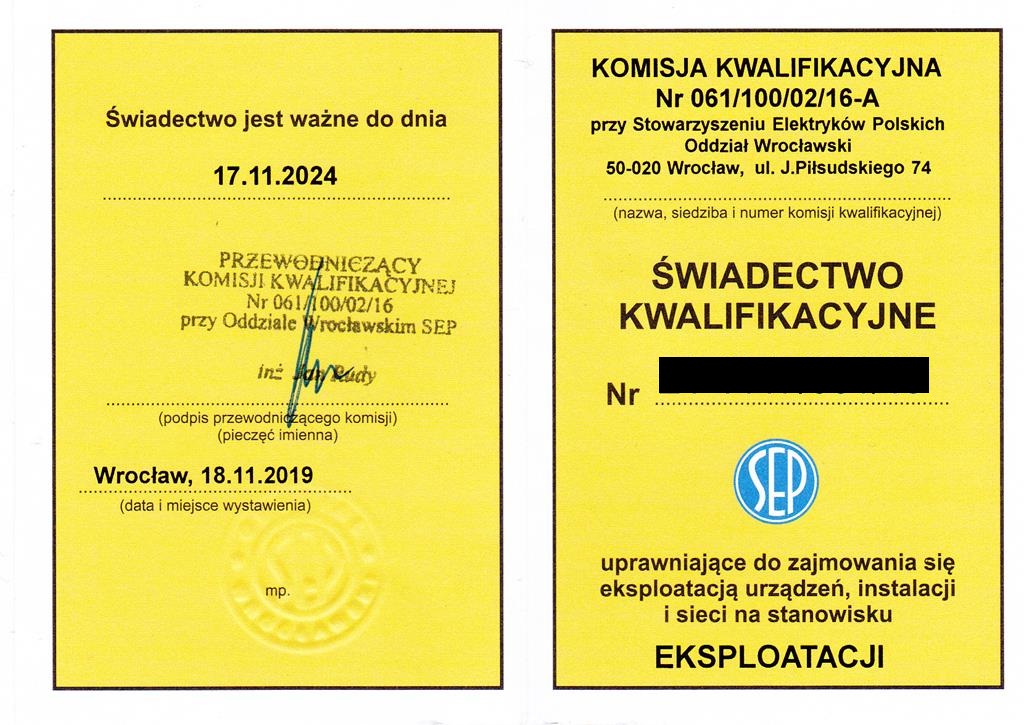 PEŁNE ŚWIADECTWA KWALIFIKACYJNE (ENERGIA ELEKTRYCZNA) :