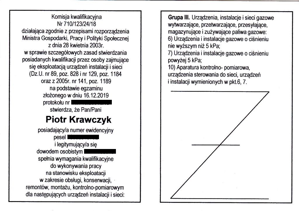 PEŁNE ŚWIADECTWA KWALIFIKACYJNE (PALIWA GAZOWE):